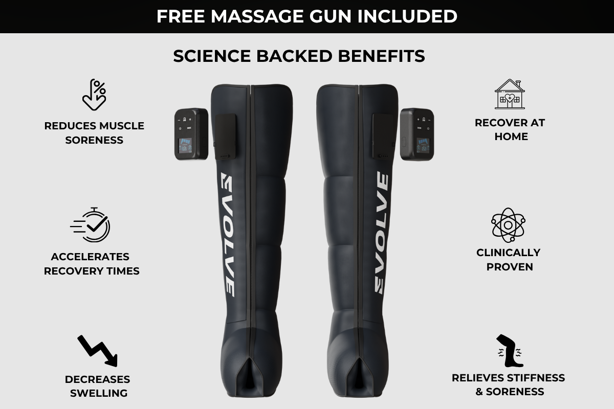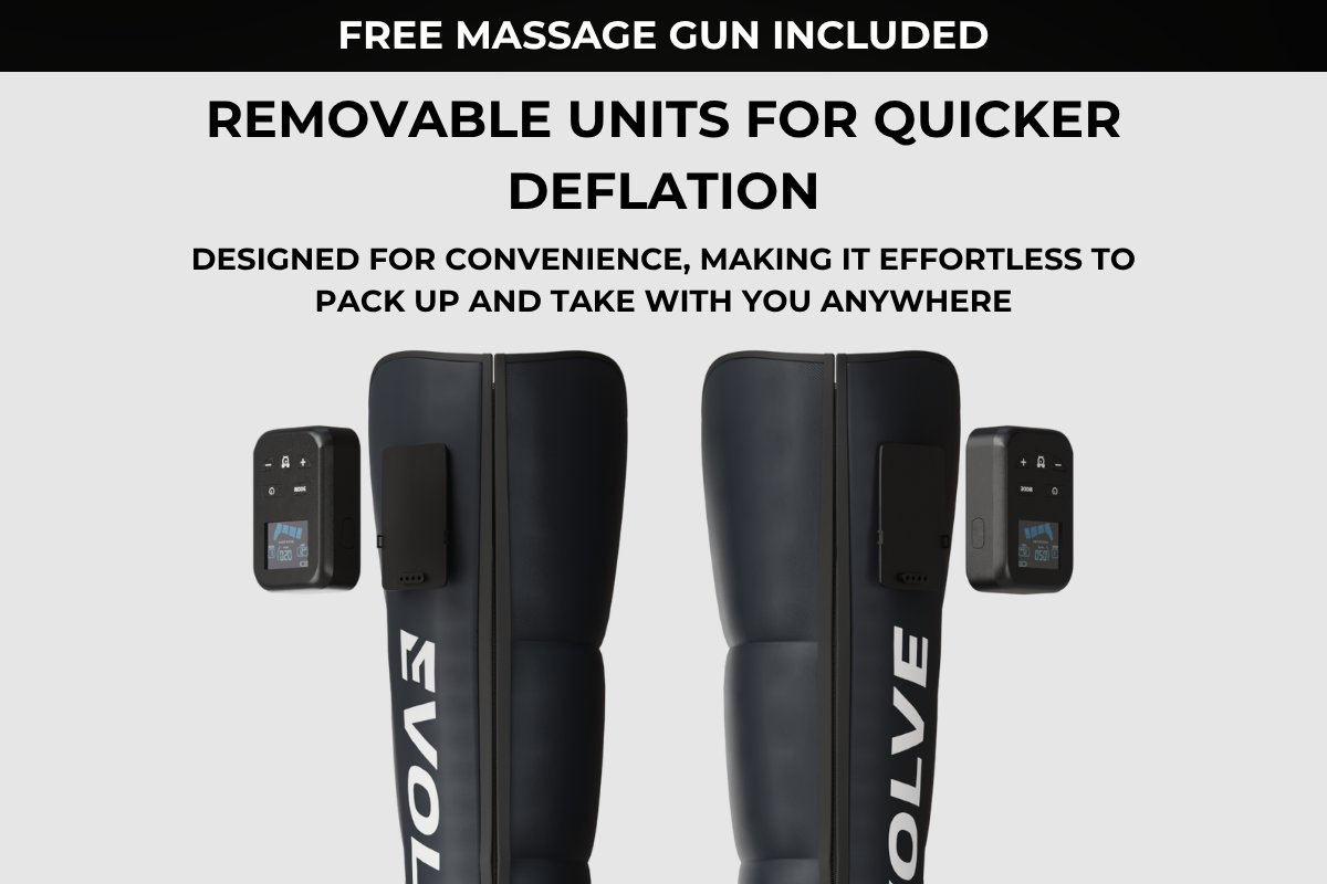 Our most advanced recovery system yet. Designed with fully wireless technology, there’s no need to stay plugged into the wall. Just charge, wear, and recover anywhere. Whether you're at the gym, on the pitch, or relaxing at home, EvoPro Wireless gives you total freedom of movement without compromising on power. It's a game changer for athletes and anyone serious about recovery on the go.