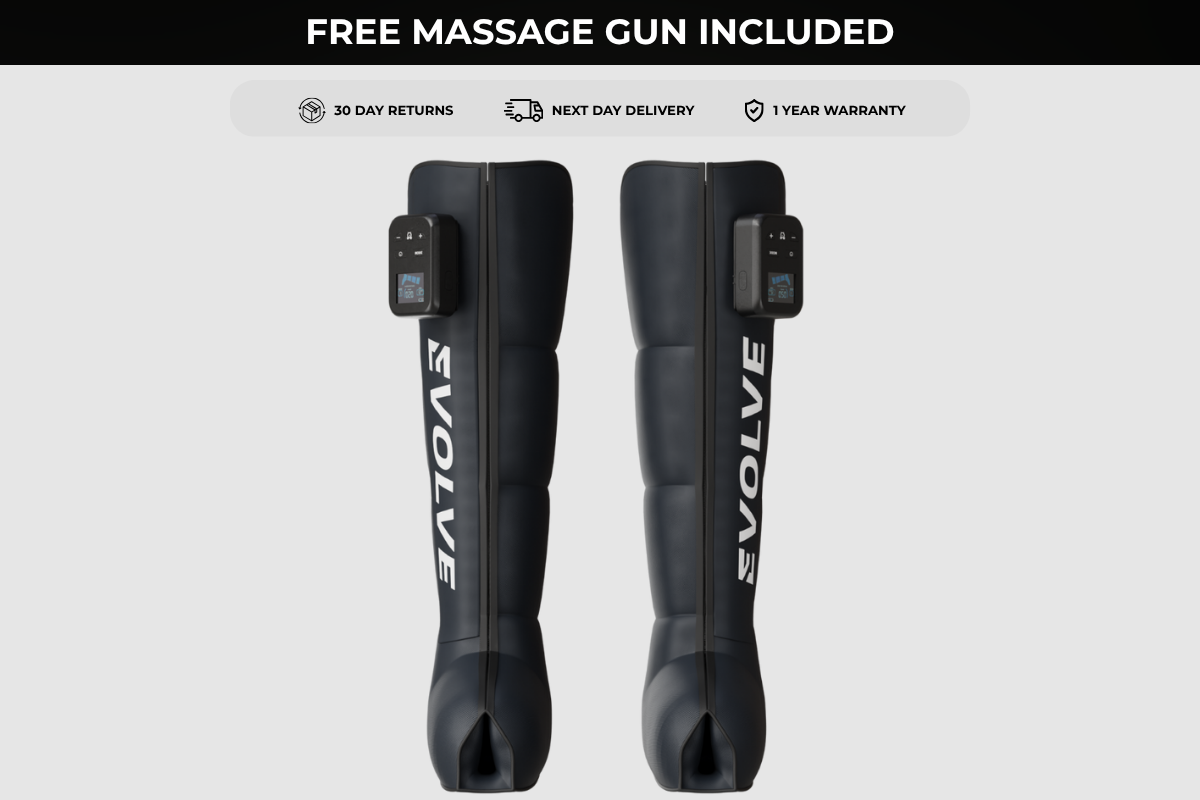 Every pair of Evolve Compression Boots comes with a 1-Year Manufacturer’s Warranty, automatically activated with your purchase. In the unlikely event of a fault, our dedicated support team will arrange a swift replacement or exchange at no extra cost.